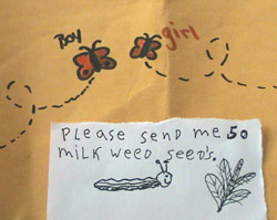 This is what 1000 letters looks like! We saved the best. Thank you very much for your time and commitment to help the Monarch Butterfly. We do read each of your letters and do our best to answer your questions and add the information to this site so that others may learn from your questions as well. Your efforts have helped us distribute over 40 MILLION milkweed seeds since we began this program in 2003. Thank you! Your pictures and drawings have been awesome! |